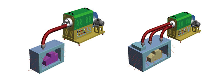 眾所周知,型砂干燥效果的好壞,直接影響到鑄件的質(zhì)量。特別是潮濕陰冷天氣,砂型烘干合箱后等待澆鑄時(shí)間一長(zhǎng),型砂也很容易再次吸潮。傳統(tǒng)的噴燈烘干方法費(fèi)時(shí)費(fèi)力,工效低,砂型澆鑄面干燥效果不理想,加上干燥深度過淺,致使外部水分滲透至澆鑄面過快,加大了鑄件質(zhì)量風(fēng)險(xiǎn)。對(duì)結(jié)構(gòu)復(fù)雜或多腔室的砂型扣箱后的烘干,傳統(tǒng)的整體烘干辦法烘干時(shí)間長(zhǎng),能耗大,且澆鑄面干燥程度很難確認(rèn),給鑄件質(zhì)量的把握增加了難度。澆鑄流程一般都是砂芯與砂型先烘干→后配箱→再澆鑄,工序多,時(shí)間長(zhǎng),速度慢,效益低。我公司根據(jù)多年工業(yè)熱風(fēng)機(jī)生產(chǎn)經(jīng)驗(yàn),結(jié)合鑄造行業(yè)的實(shí)際需要研發(fā)的鑄型熱風(fēng)干燥機(jī),較好的解決了鑄造企業(yè)生產(chǎn)中所遇到的這類問題。